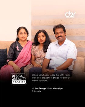 ""We are very happy to say that D2R Home Interiors is the perfect choice for all your interiors solutions." Mr. Ipe George and Mrs. Mercy Ipe, Thiruvalla."