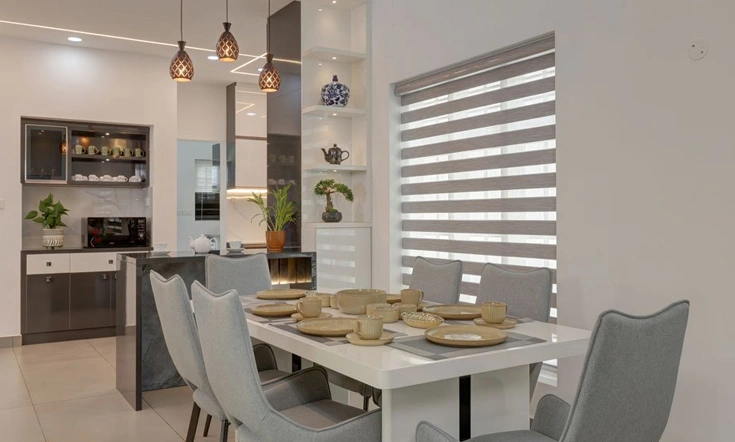 Another room which should define a clean and hygienic environment is the ding room. It is the room where you congregate to dine with family and friends. The dining set, crockery, shelves, and wash area must be aesthetically designed to maximize the space and hygiene requirements in addition to the comfort of dining. Matters like the distance of the dining area to the wash area, the choice of dining table and chairs, lighting, colours used are some of the important aspects we at d2r Interiors pay close attention when designing such a space. The result of such an exercise is a healthy and beautiful dining space.